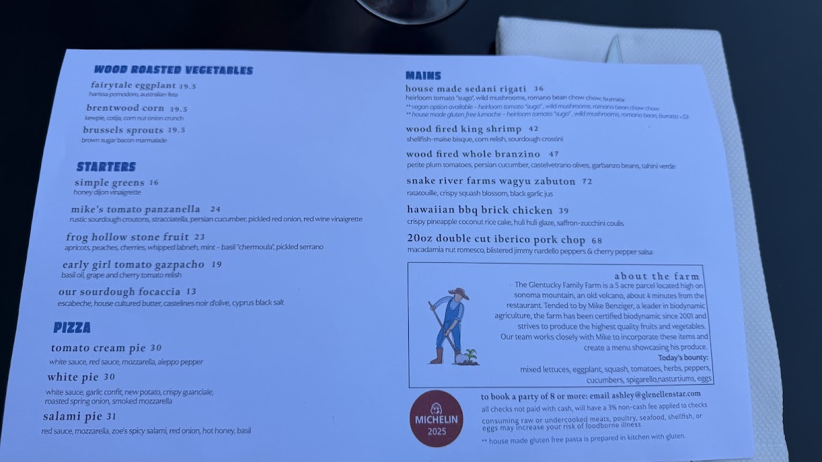 Introducing the culinary experience at Glen Ellen Star, a charming New American restaurant nestled in the heart of Glen Ellen, California. This intimate eatery captivates diners with its cozy ambiance, accentuated by a wood-burning oven that adds a unique warmth to each dish. The menu showcases a delightful array of flavors, from the renowned Tomato Cream Pie to the indulgent House Made Lumache Mac and Cheese, briskly highlighting the creativity that defines Californian cuisine.