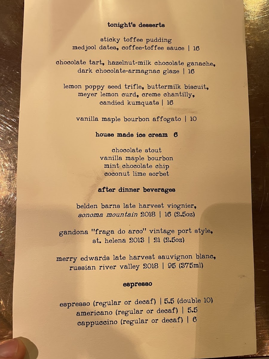Tonight's Desserts