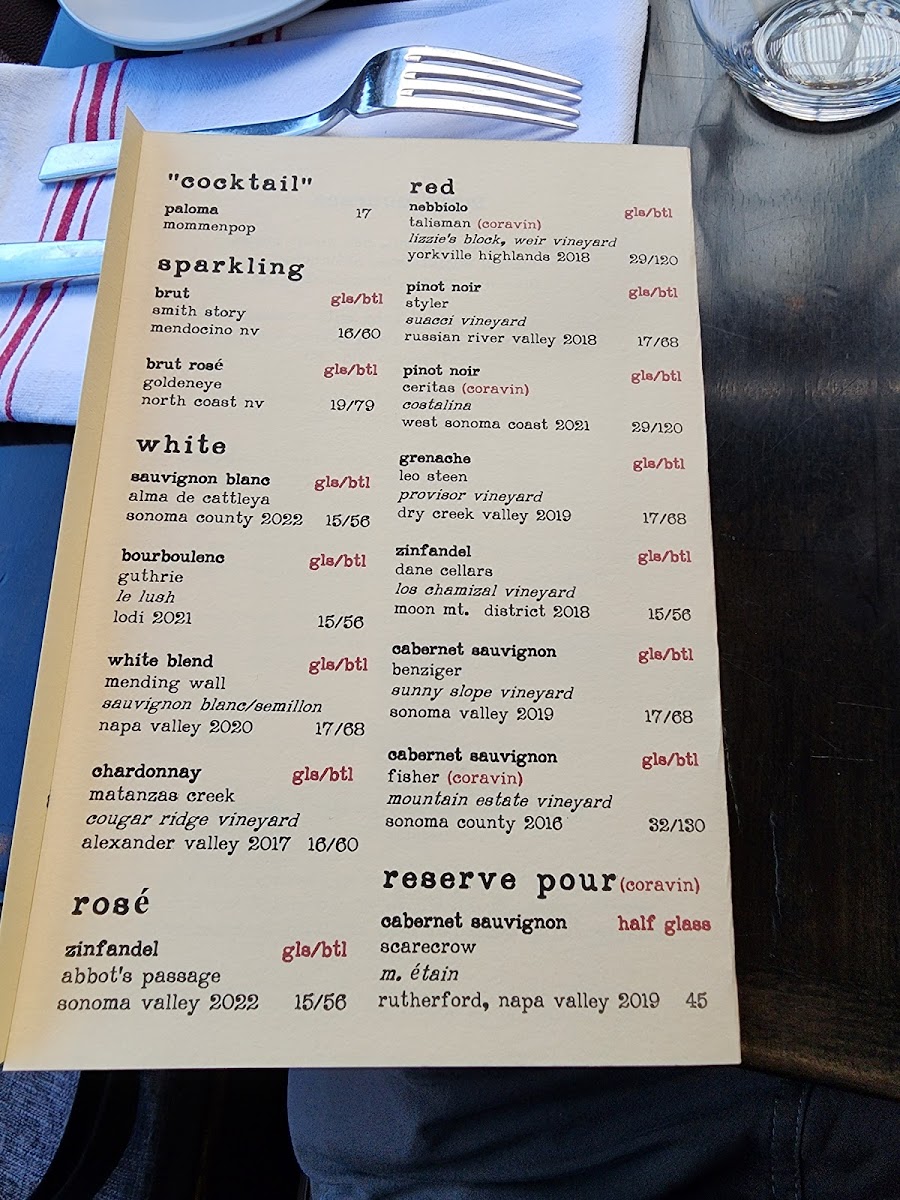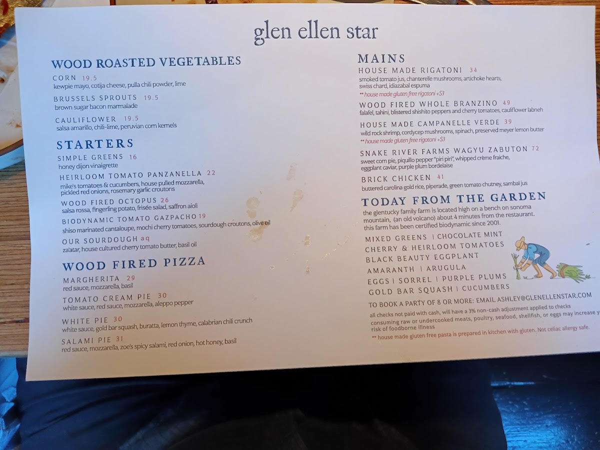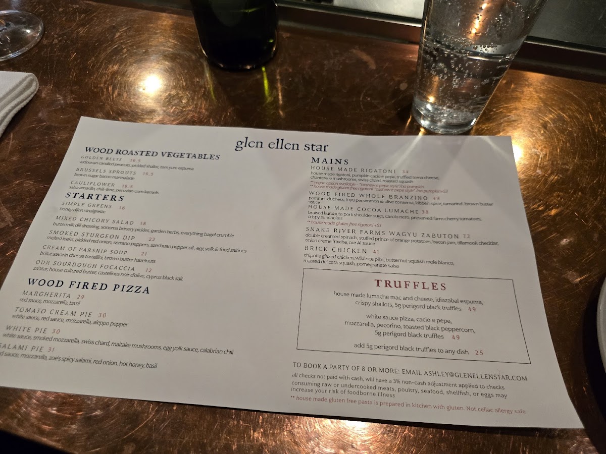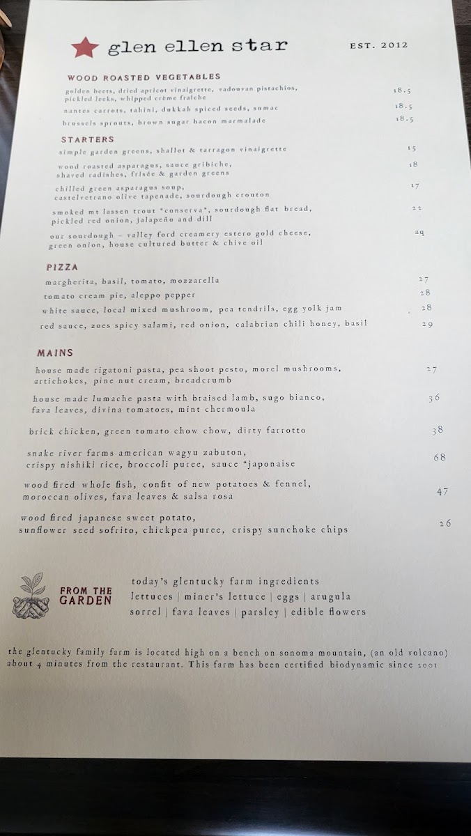 Glen Ellen Star Menu